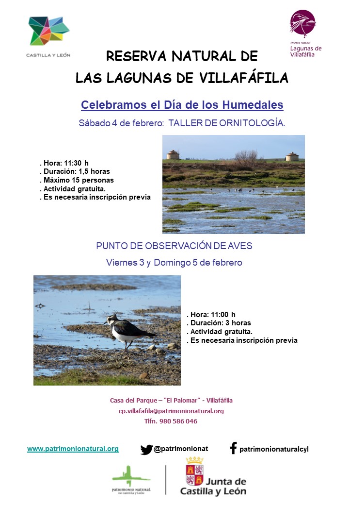 Con motivo de la celebración del Día Internacional de los Humedales, desde la Casa del Parque «El Palomar» de Villafáfila, se organiza el sábado día 4 de febrero un taller de identificación de aves, para adultos y niños que quieran iniciarse en el campo de la ornitología.