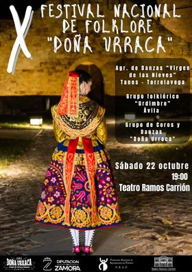 Un año más el grupo Doña Urraca celebra su 10º Festival nacional de Folklore Doña Urraca, este sábado día 22 a las 19:00 en el Teatro Ramos Carrión, con la participación de dos grupos nacionales procedentes de Ávila y de Cantabria que junto con Doña Urraca, ataviados con la indumentaria tradicional de su lugar de origen, acercarán a todos los asistentes distintos bailes de las comarcas zamoranas y otras piezas procedentes de otras comunidades, en un espectáculo que promete ser muy vistoso y con un alto nivel ya que son grupos con una trayectoria impecable y de muchos años. Las INVITACIONES se pueden conseguir desde hoy hasta el viernes en la sede del grupo de 18:30 a 20:30, colegio del tránsito junto al conservatorio de música. Con este festival Doña Urraca da la bienvenida al nuevo curso de su escuela de baile que cuenta con más de 300 alumnos en su escuela ya matriculados y que esperamos que siga aumentando, que en su mayoría son niños que se encargarán en un futuro de llevar el folklore de la provincia de Zamora por muchos lugares de ámbito nacional e internacional. Los amantes del folklore popular tendrán la oportunidad de disfrutar de una jornada de convivencia en la que se compartirá la cultura intrínseca de cada región, con la premisa de garantizar la difusión de nuestros valores y tradiciones.